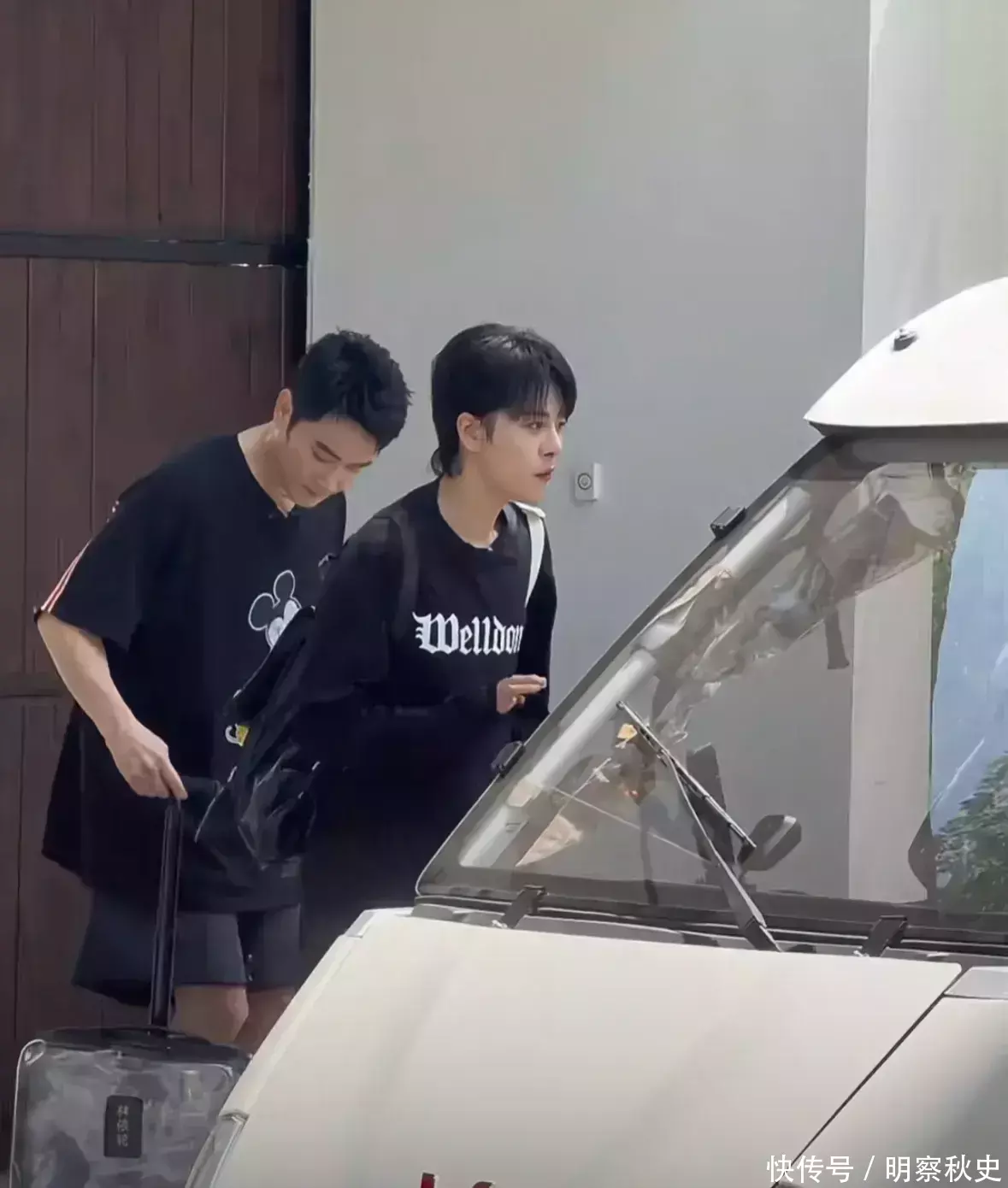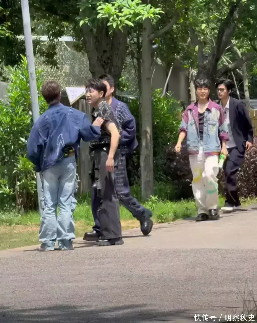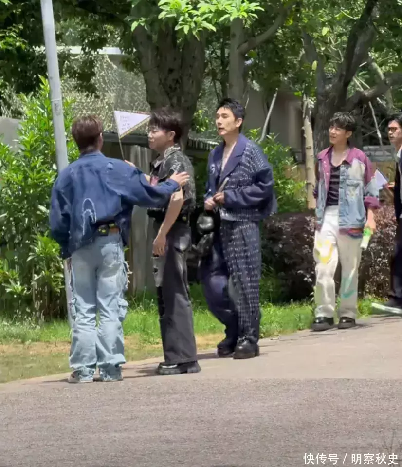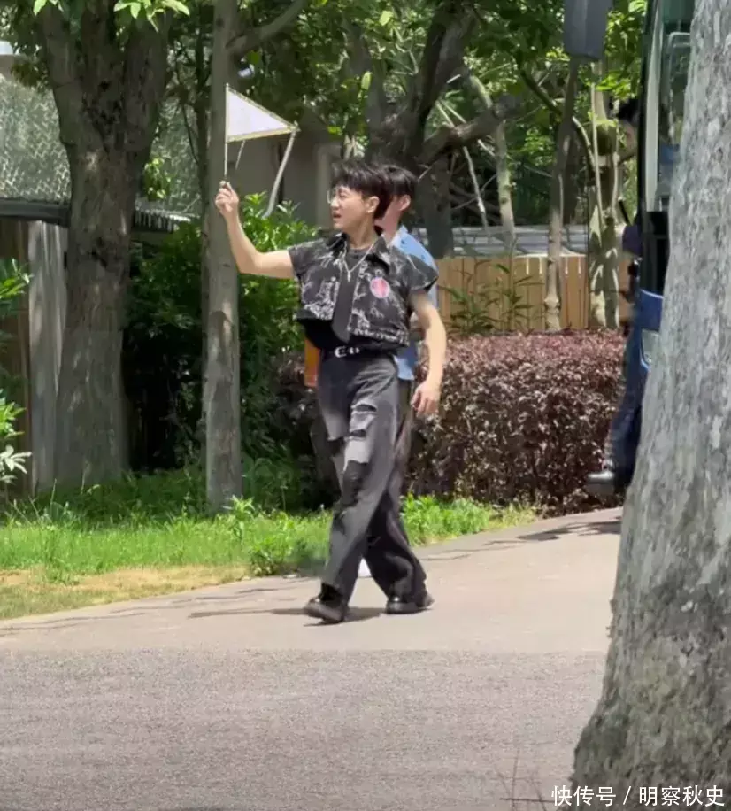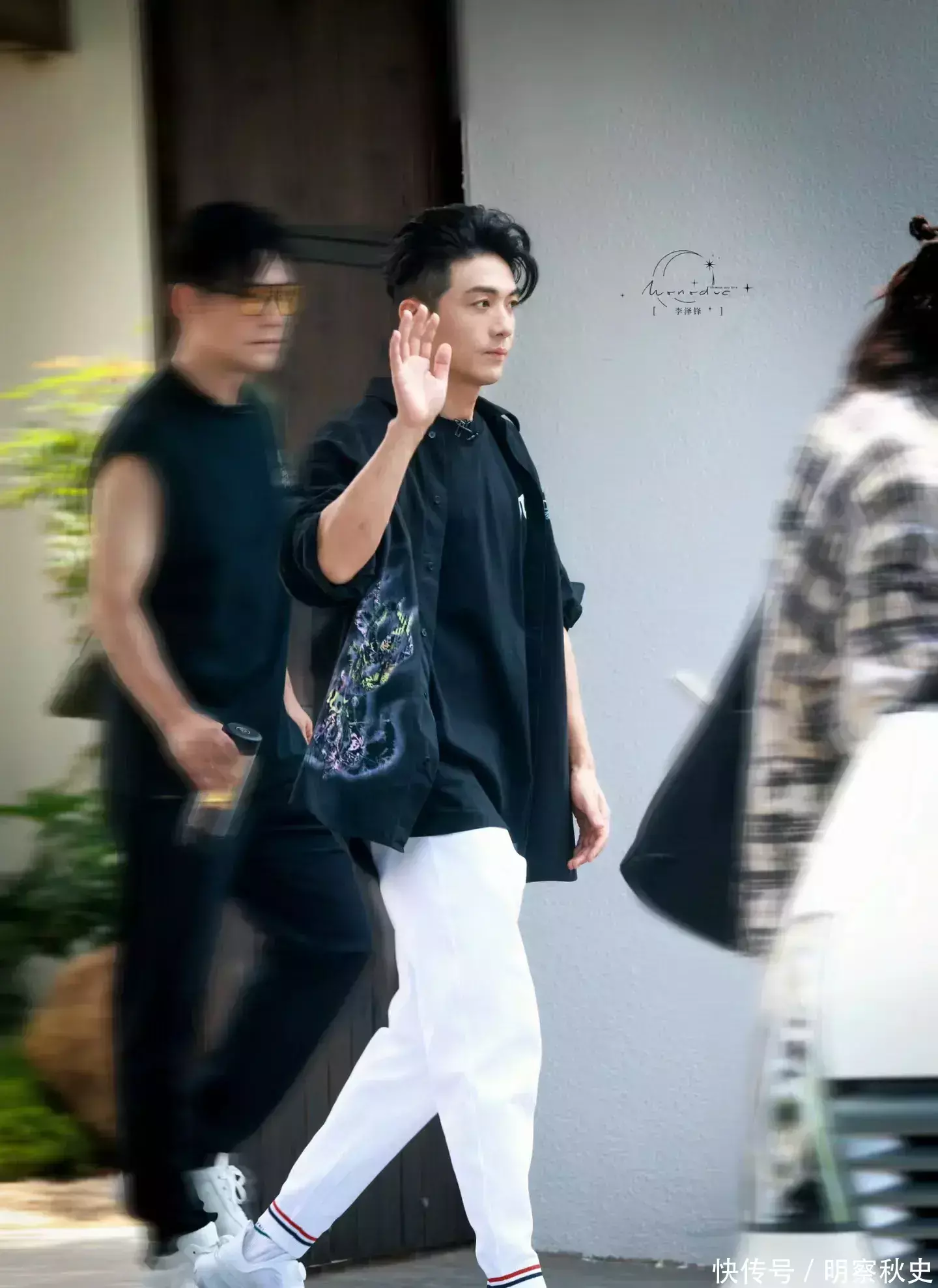 林依轮穿戴套装跟在背面,嗅觉他们穿的都好多啊,这烈日炎炎的的确不太热,况且清一色的厚底鞋,哈哈,男明星的骄气心!