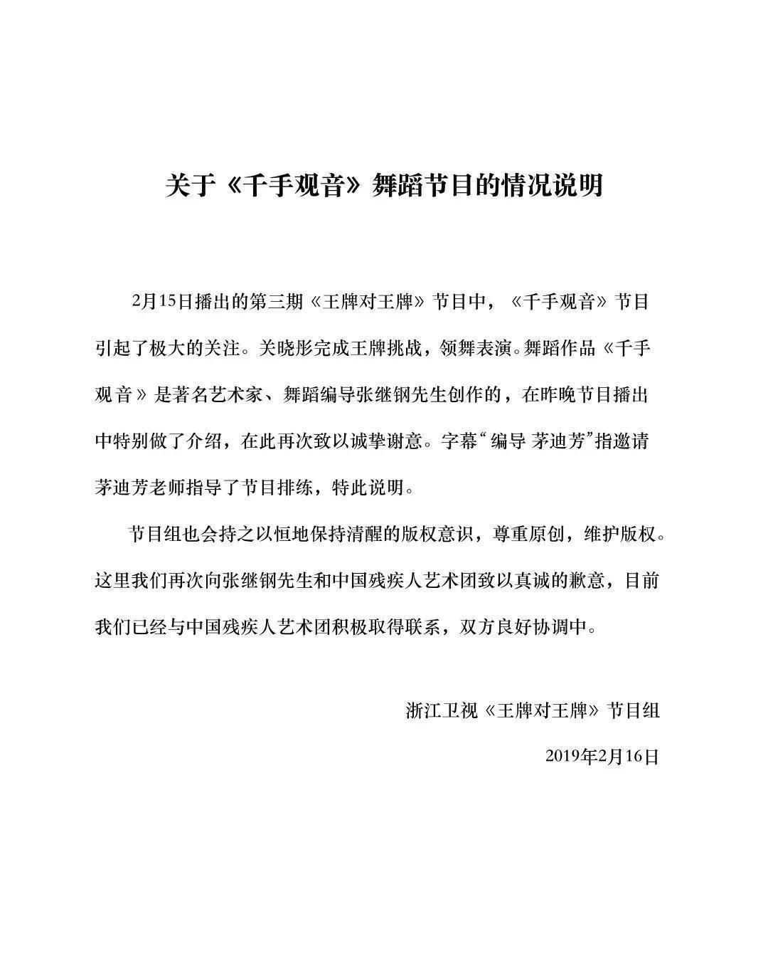 2006年,跳舞编导茅迪芳告状张继钢,称《千手不雅音》抄袭其1987年作品《安定天女》,并提交手稿和谋划图当作把柄。法院审理后觉得,两作品的音乐、服装、舞好意思等元素相反权贵,一样部分属于群众限制素材,最终驳回诉讼请求。2019年,关晓彤在综艺节目中扮演《千手不雅音》,再次激勉版权争议。中国残疾东谈主艺术团声明领有该跳舞的圆善版权,节目组未经授权使用组成侵权,最终《王牌对王牌》节目组公开致歉。