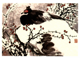 雉用大笔饱墨点染,画法大要与八哥、乌鸦调换。用大笔饱墨点染较难。墨饱水头大。梗概得回津润的终结,但容易渗湮过当,浮松了造型的准确性。这需要事前准备好一张吸水纸,进行合乎搁置,戒备下按吸水纸时,不行过力,辞让出现缺墨灰斑。雉与石造型轻整,雪枝则得细琐一些,酿成对比。染雪要戒备有浓淡,不要染成灰纸雷同平板。染雪见笔,有动的嗅觉,好像大雪还不才着。雪枝缀以红果,使画面显得凝视些。