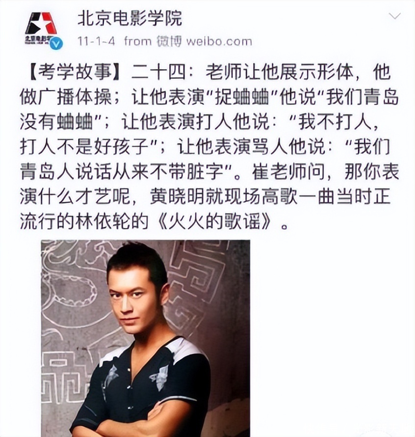 其实这样的弃取活动无可厚非,毕竟关于演员来说,扮演、舞蹈等专科特长要比文化常识更漏洞,口试时淳厚更垂青个东谈主特长和脸长得好不排场。比如往常黄晓明素养时的遗闻还被北京电影学院广而告之过。那时淳厚让他展示形骸,他就作念起了播送体操,让他扮演捉蛐蛐,他说青岛莫得蛐蛐,让他扮演打东谈主,他发达地说“我不打东谈主,打东谈主不是好孩子”,让他扮演骂东谈主,他则说“咱们青岛东谈主话语从来不带脏字”,临了唱了首阐发不太好的《火火的歌谣》……即便这样他照旧被中式了,因为崔新琴淳厚说他的脸就值300分,说白了即是可以靠脸吃饭。