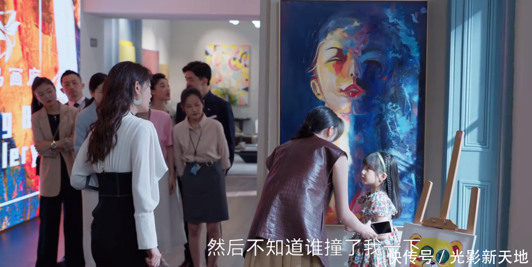 比如摆满名贵画作的画廊里,童瑶饰演的顾茉莉不但带孩子上班,还让她在画傍边用染料画画;